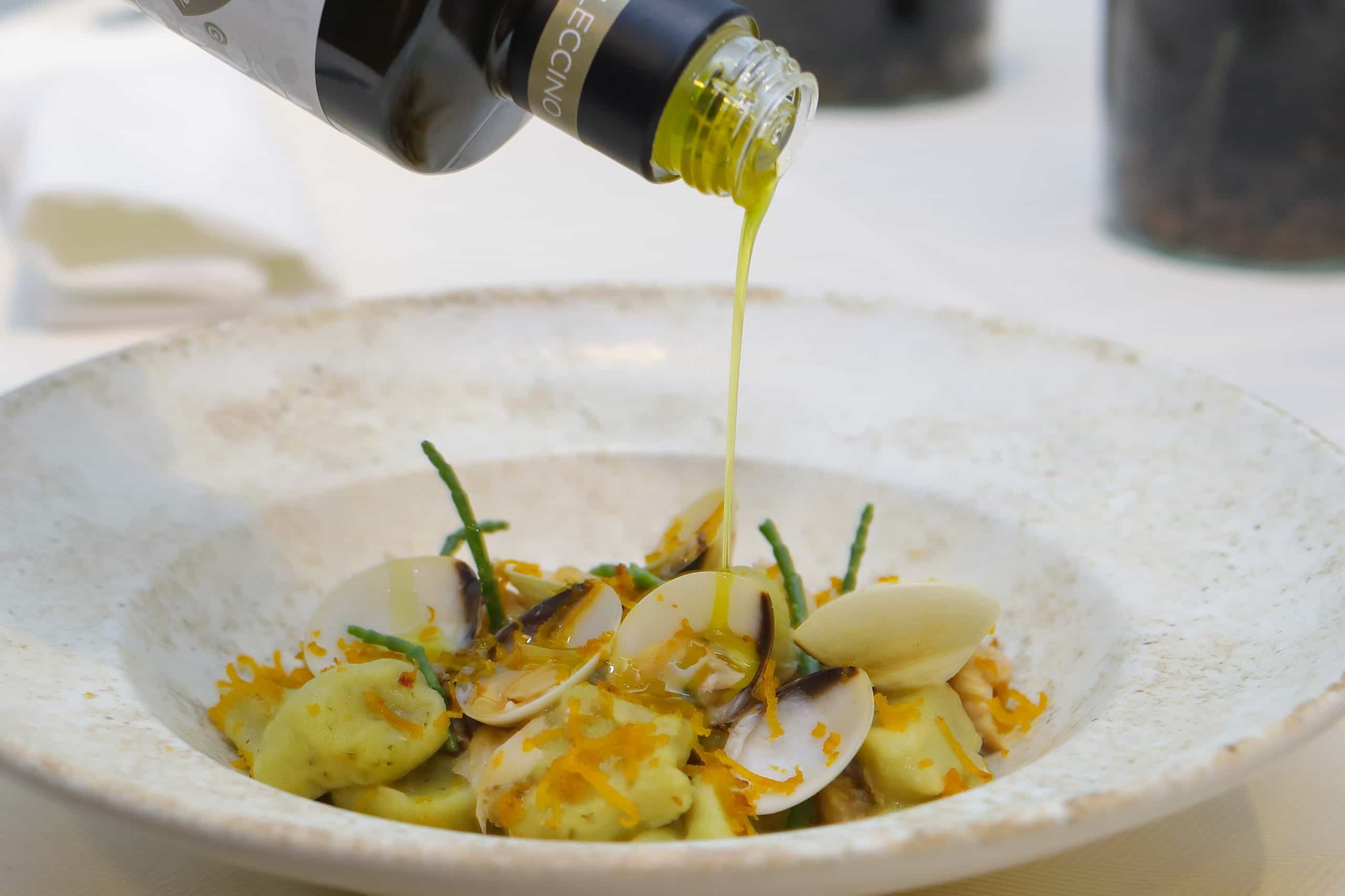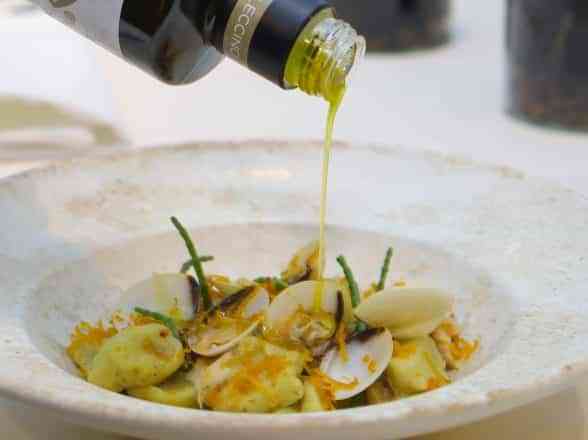 Za goste, ki jim surove jedi niso najbolj pri srcu pa imamo na voljo tople predjedi, predvsem različne oblike testenin z školjkami, ki se prilagajajo sezonsko (vongole, pedoče, kapesante…) ali pa v kombinaciji z mehkužci (follpoti, sipe, hobotnice,…) ali rakci (tigraste kozice, škampi, gamberi, morske bogomoljke,…)